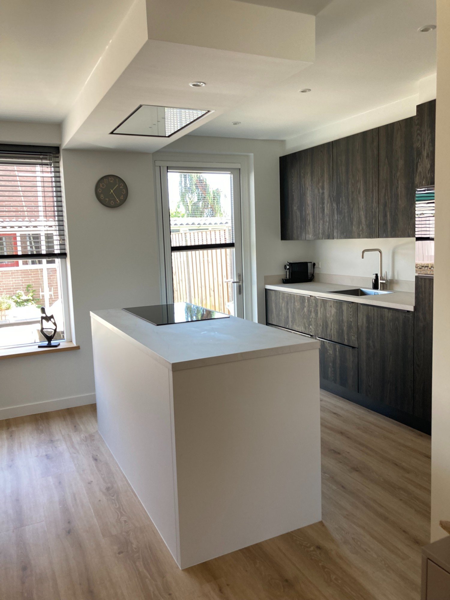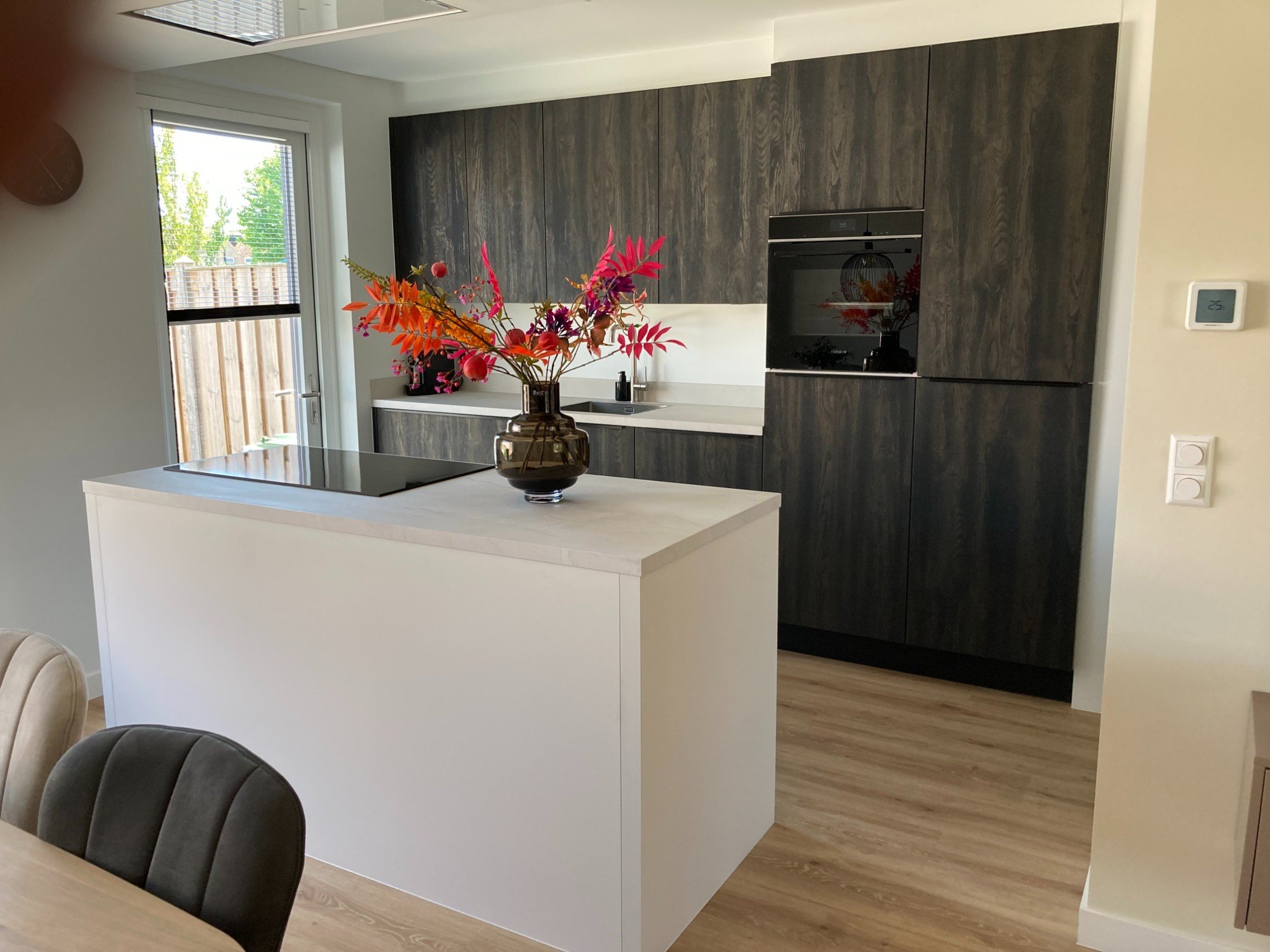Een prachtige keuken met kookeiland bestaande uit onder andere: